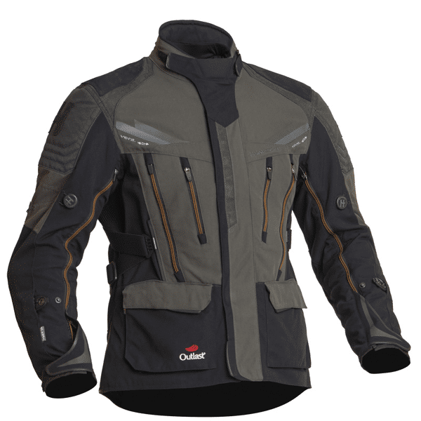 his multifunctional textile motorcycle jacket is designed for riders who need adaptability, comfort, and reliable protection in all conditions. Built from a durable smooth-finish PA weave and equipped with a removable Dryway+ 2.0 membrane combined with Outlast® temperature-regulating lining, it offers excellent versatility for changing weather. Water-repellent nubuck and HI-ART reinforcements at the shoulders and elbows enhance durability and safety, while large ventilation openings, stretch panels, and multiple adjustment options provide a personalised and comfortable fit.
