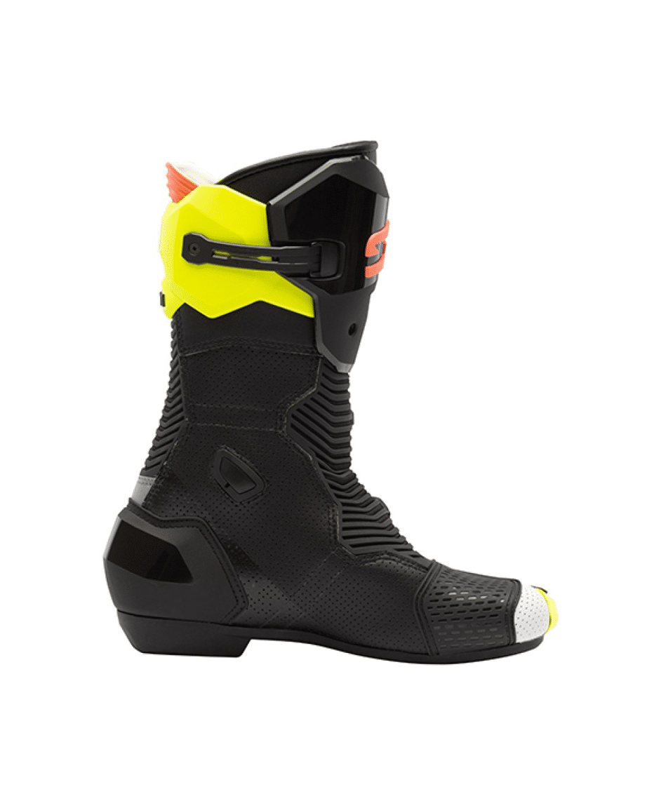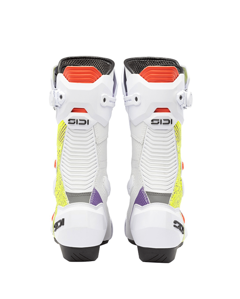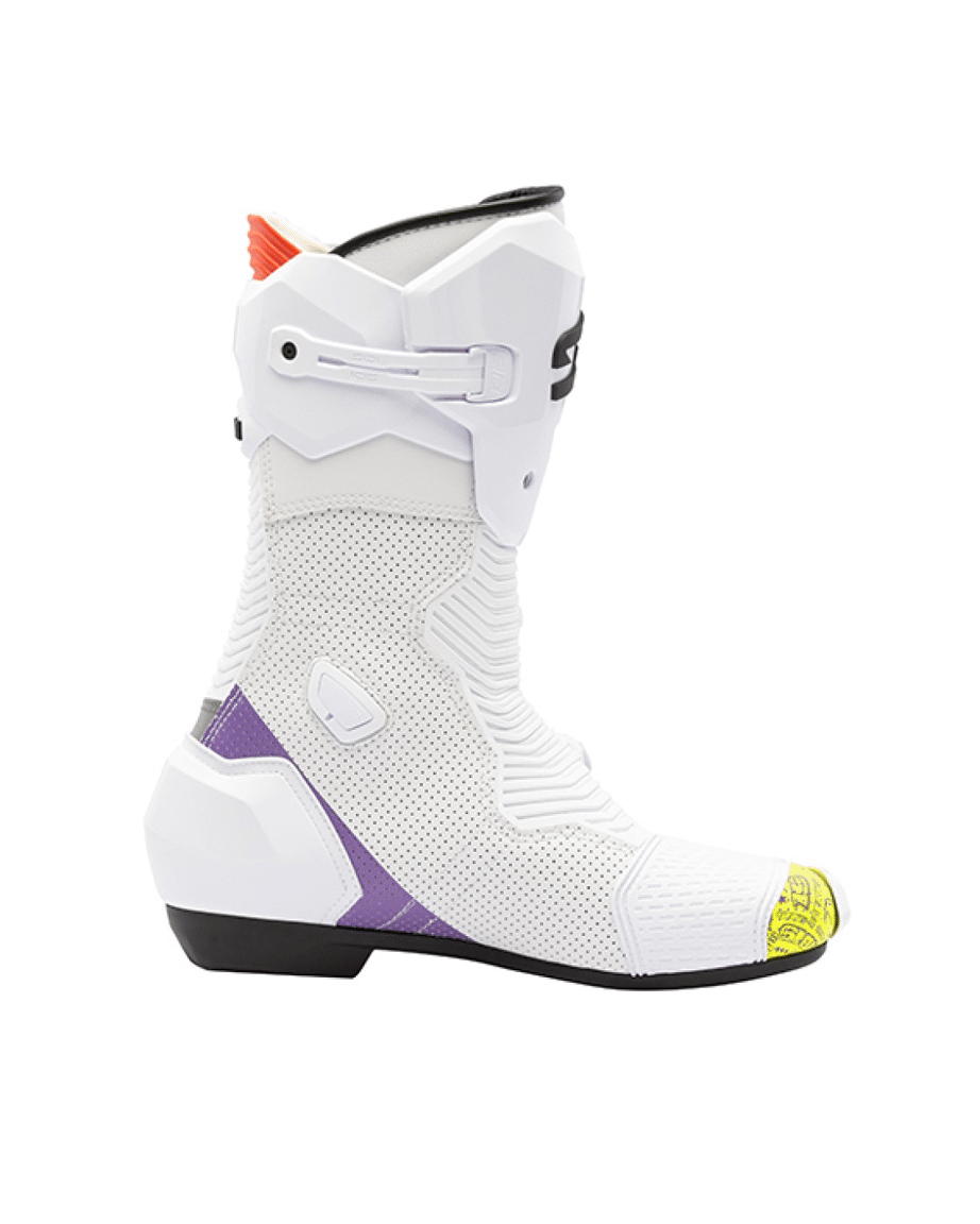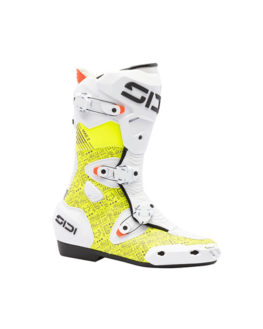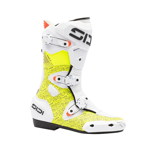 MAG 2 – Geëvolueerd naar het extremeOntstaan in de MotoGP. Gebouwd om grenzen te verleggen.De MAG 2 is ontworpen voor toprijders die absolute controle, maximale feedback en compromisloze bescherming eisen onder de meest extreme raceomstandigheden. Geïnspireerd door MotoGP-prestaties en ontwikkeld door intensieve tests, combineert de MAG 2 een aerodynamische vorm met race-waardige bescherming voor een precieze respons bij hoge snelheden en tijdens agressieve bochten.Het ademende bovenwerk van microvezel is voorzien van CE-gecertificeerde impactbeschermers en externe protectoren die het risico op een valpartij verminderen zonder de bewegingsvrijheid te beperken. Het geavanceerde NUUN 002M-draaisysteem heeft een driepuntssluiting die de voet stevig vastzet, zelfs onder extreme druk – verstelbaar tijdens het rijden voor realtime controle.Ontworpen met een vlakke binnenzijde voor meer contact en gevoel, en uitgerust met een geventileerde Concrecto®-buitenzool, geeft de MAG 2 rijders een totale verbinding met de machine – waardoor je koel, stabiel en scherp blijft in elke bocht.Belangrijkste kenmerkenAdemend bovenwerk van microvezel met geïntegreerde bescherming – lichtgewicht, schokbestendige constructieNUUN 002M sluitsysteem – aerodynamische 3-punts draaisluiting voor een veilige, verstelbare pasvormGevormde structuur met flexibele inzetstukken aan de voor- en achterkant – bewegingsvrijheid onder druk zonder concessies te doen aan de vormPlatte binnenkant – verbetert het gevoel en de directe verbinding met de motorGeventileerde teenopeningen – te openen luchtkanalen voor verkoeling naar behoefteConcrecto® race-buitenzool – ontworpen voor precieze feedback en gripSpeciaal ontworpen voor: racen op MotoGP-niveau, extreme bochten, maximale acceleratie en controle