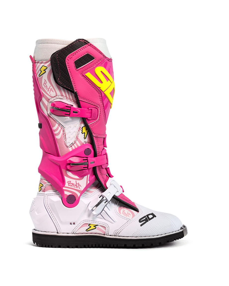 CROSSAIR HD – ONTWORPEN VOOR EXTREME ENDURO-PRESTATIESDe Crossair HD van SIDI is 's werelds eerste laars die specifiek is ontworpen voor hard enduro en super enduro. Deze laars, ontwikkeld en gedragen door professioneel rijder Billy Bolt, zet een nieuwe standaard op het gebied van prestaties, bescherming en gewicht.Met alle premium eigenschappen die je van SIDI mag verwachten, weegt de Crossair HD slechts 1700 gram (maat 43), waardoor hij aanzienlijk lichter is dan elk vergelijkbaar product. Het interne, met glasvezel versterkte exoskelet biedt maximale ondersteuning en veiligheid, terwijl de laars licht en wendbaar blijft.De rubberen zool is direct aan het bovenwerk gestikt, geïnspireerd op triallaarzen, en biedt ongeëvenaarde grip op zowel voetsteunen als ruw terrein. Elk detail is het resultaat van continue ontwikkeling om te voldoen aan de specifieke eisen van Billy Bolt en de hoogste normen van de moderne enduro-racerij.Belangrijkste kenmerkenVersterkte voorplaatKlittenbandsluitingVervangbare en micro-verstelbare gespenGeïntegreerd anti-hyperextensiesysteemVersterkt ritssluitingssysteemKuitsteunzoneAnatomische hielstructuurVervangbare middenvoetsbeentjesTeenbescherming van thermoplastisch materiaalBescherming en controleHet anti-hyperextensiesysteem is ontworpen om natuurlijke beweging mogelijk te maken en gevaarlijke overstrekking te voorkomen, waardoor de benen volledig beschermd worden zonder de prestaties te beperken.Ultralicht ontwerpDankzij het gebruik van geavanceerde materialen zoals glasvezel biedt de laars volledige ondersteuning en bescherming bij een aanzienlijk lager gewicht.Geoptimaliseerd voor motorgevoelDe ultradunne interne constructie verbetert de gevoeligheid en controle, waardoor een directere verbinding met de motorfiets mogelijk is.Duurzaamheid en duurzaamheidDe Crossair HD is gemaakt van hoogwaardige materialen en volledig vervangbare onderdelen en is ontworpen om de zwaarste omstandigheden te doorstaan.Speciaal voor hard-enduro ontworpen zoolDe speciaal ontworpen zool zorgt voor maximale grip en stabiliteit op elk terrein, waardoor het de perfecte keuze is voor hard-enduro rijders.