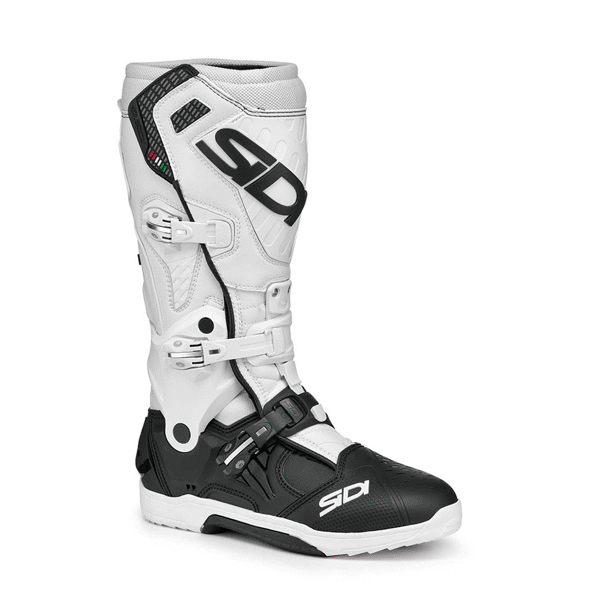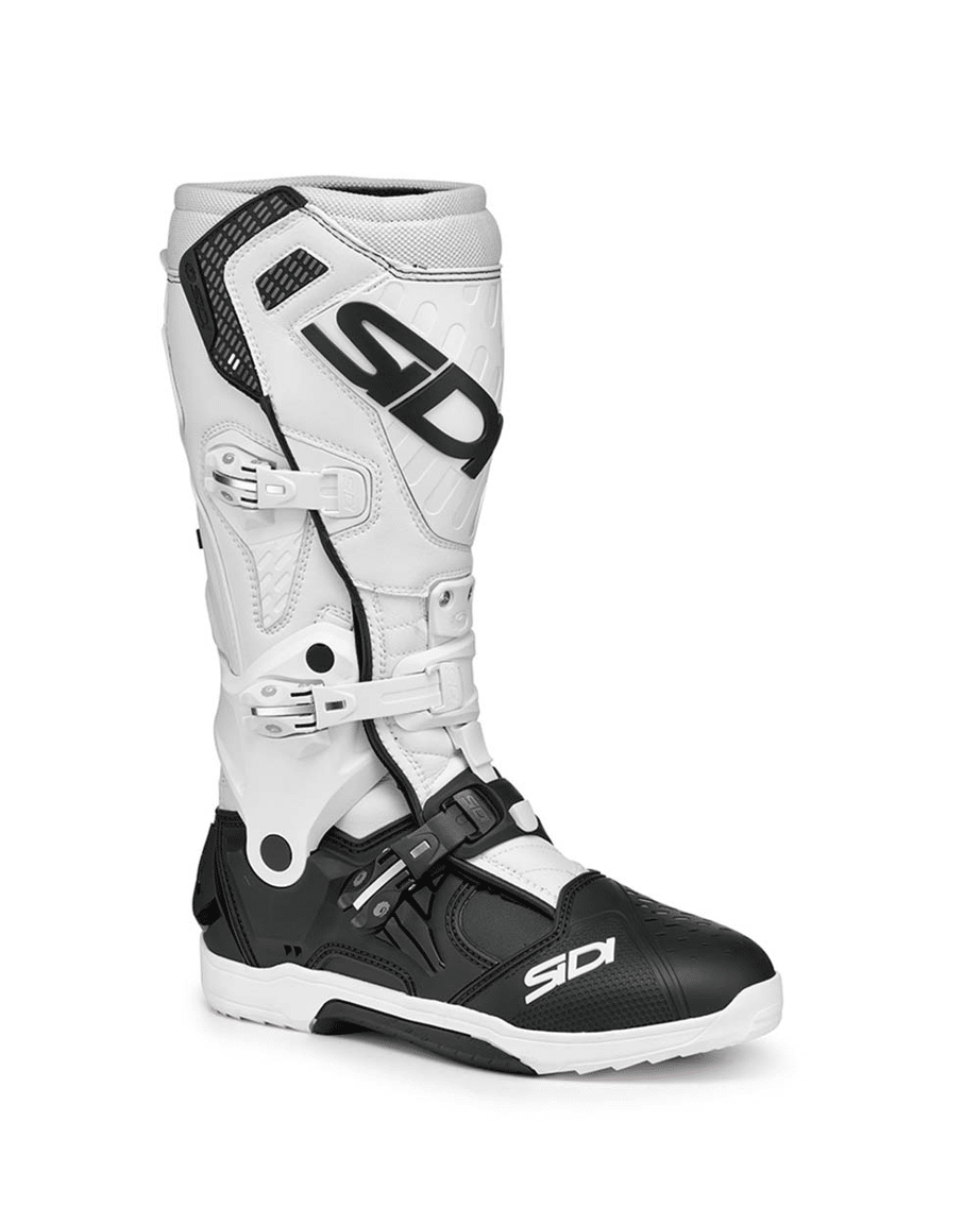 Een crosslaars moet duurzaam, comfortabel en gemaakt zijn van hoogwaardige materialen om de rijder een goede gevoeligheid met de motor te garanderen: de nieuwe Sidi CROSSAIR crosslaars voldoet aan al deze eigenschappen en is bovendien aanzienlijk lichter dan de voorgaande modellen, zonder in te leveren op bescherming en veiligheid. Een laars die voldoet aan de eisen van onze professionele rijders die ons hebben geholpen bij de ontwikkeling ervan.TECHNISCHE KENMERKEN• Gemaakt in Technomicro• Vibram-zool• Sluitingssysteem met klittenband en geheugenfunctie. De riemen hoeven slechts één keer te worden afgesteld en blijven in dezelfde positie voor elke rit.• Sluitingssysteem met klittenband met hoge weerstand voor een betere pasvorm rond de kuit• Nieuw dubbel FLEX SYSTEM dat het buigen van de laars op twee verschillende punten vergemakkelijkt• Nieuw HYPER EXTENSION SYSTEM in de enkel, achterkant en wreef om overstrekking te voorkomen bij het voor- en achterwaarts buigen van het been• Verbeterde aerodynamica. Bescherming tegen hitte aan de binnenkant van de laars.• De hiel is gemaakt van PU Deze specifieke vorm is ontworpen en getest om de voet meer bescherming te bieden bij verdraaiing.• Middenvoetbescherming geïntegreerd in de laars. Volledig verwijderbaar en vervangbaar.• Bovenwerk van leer en microvezel.• CE-gecertificeerd.