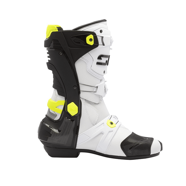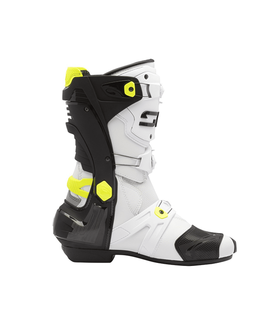 Compromisloze veiligheid met Rex-laarzenAls het op veiligheid aankomt, doen de Rex-laarzen geen concessies. Elk onderdeel van deze racelaarzen is zorgvuldig vervaardigd om maximale bescherming te bieden, waardoor ze de keuze zijn van onze professionele rijders. Met hoogwaardige TPU-beschermers en een met glasvezel versterkt nylon exoskelet bieden Rex-laarzen onschatbare ondersteuning en duurzaamheid op het circuit.Het verstelsysteem van hars met hoge dichtheid is ontworpen voor een perfecte pasvorm, met dubbelzijdige verstelbaarheid voor comfort en veiligheid. Strategisch geplaatst buiten de belangrijkste contactpunten, is dit systeem naadloos geïntegreerd in de structuur van de laars om de impactbescherming te verbeteren. Dankzij het slip-on ontwerp aan de zijkant bieden de Rex-laarzen een veilige en stabiele rit, zodat u zich kunt concentreren op uw prestaties.Belangrijkste kenmerken:Technomicro microvezelconstructie.Air Teflon mesh voor optimale ventilatie.Cambrelle voering voor comfort.Rubberen buitenzool voor verbeterde grip.Tecno-3 druksluitingssysteem.Vervangbare scheenplaat voor extra bescherming.Enkelsteunen voor stabiliteit.Ventilatiesysteem voor ademend vermogen.Asymmetrische hielkap voor een veilige pasvorm.Vervangbare slider voor een langere levensduur van de laars.